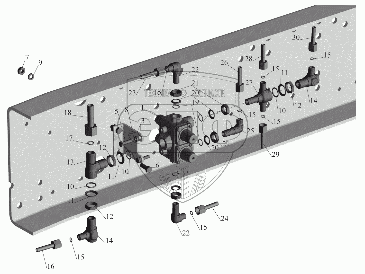 Каталог запасных частей к технике: МАЗ-630333. Крепление клапана четырехконтурного 5516-3515004
