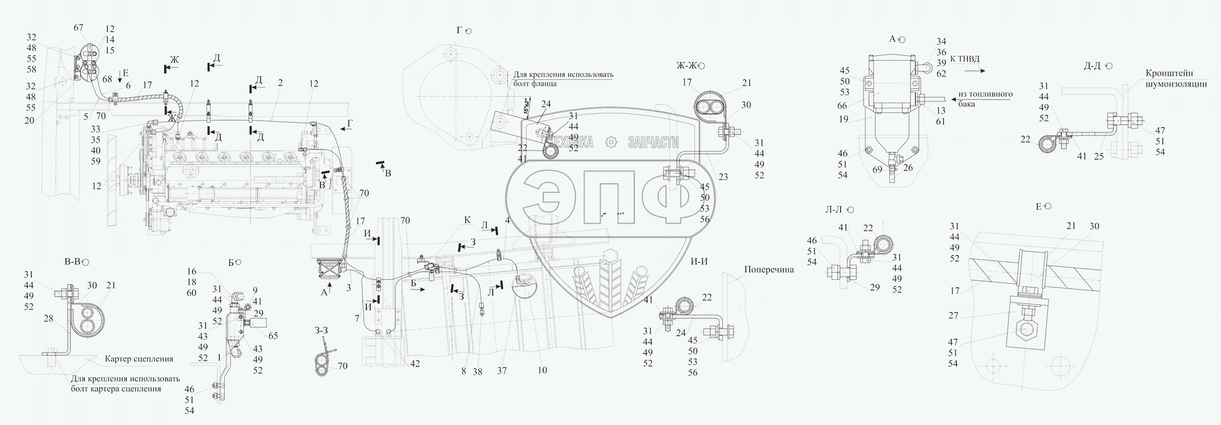 Каталог запасных частей к технике: МАЗ-630333. Крепление топливопроводов 533632-1104002