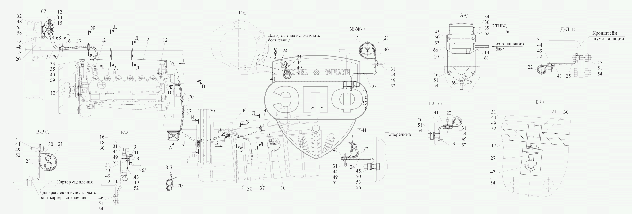 Каталог запасных частей к технике: МАЗ-630333. Крепление топливопроводов 533632-1104002-010