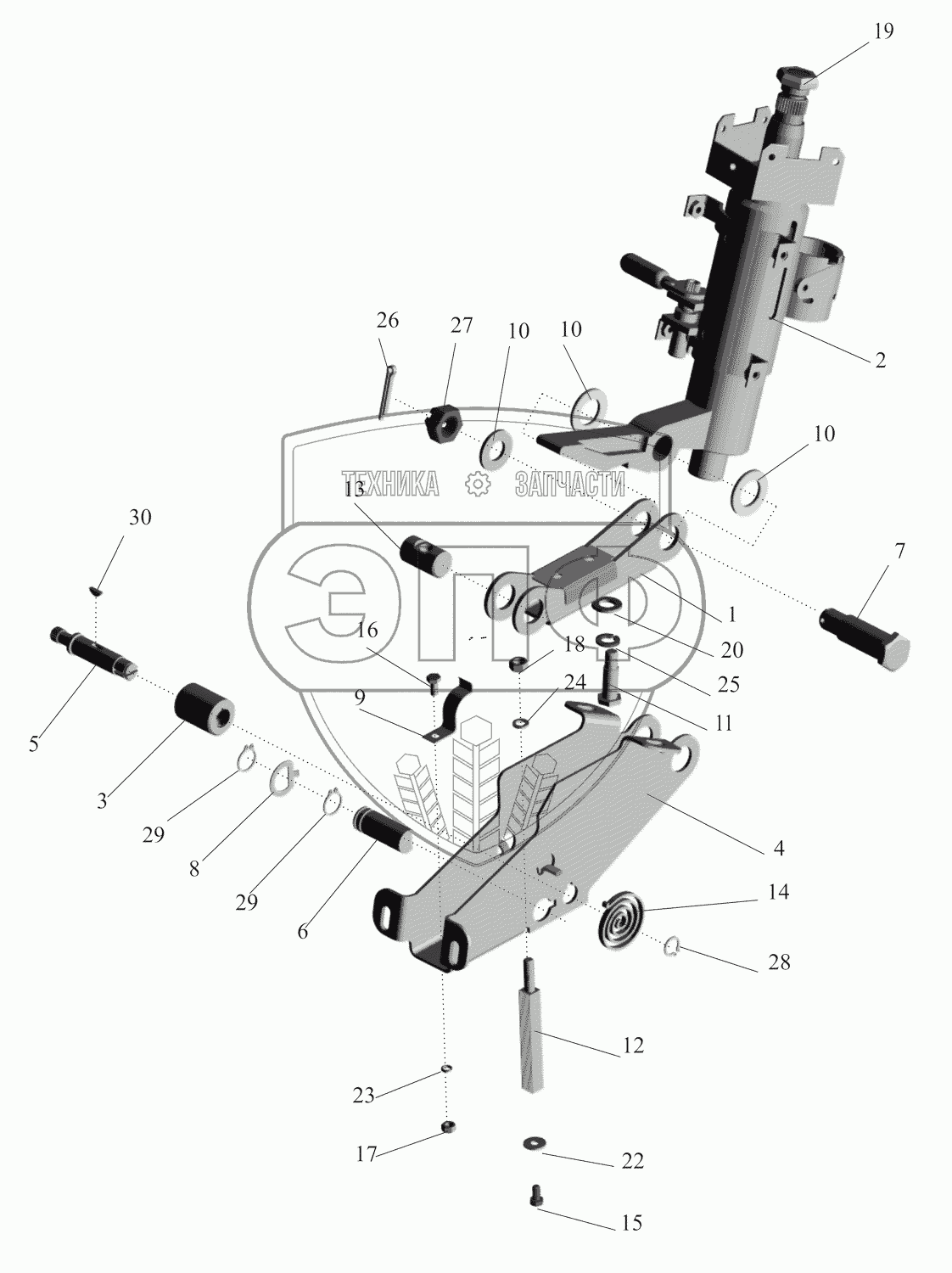 Каталог запасных частей к технике: МАЗ-630333. Кронштейн с колонкой 64221-3403008