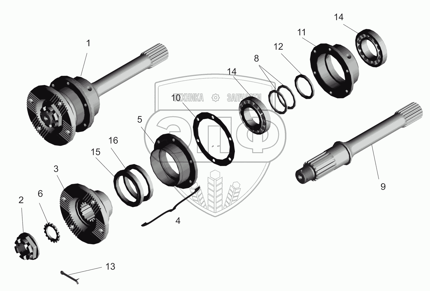 Каталог запасных частей к технике: МАЗ-630333. Мост средний. Вал задний