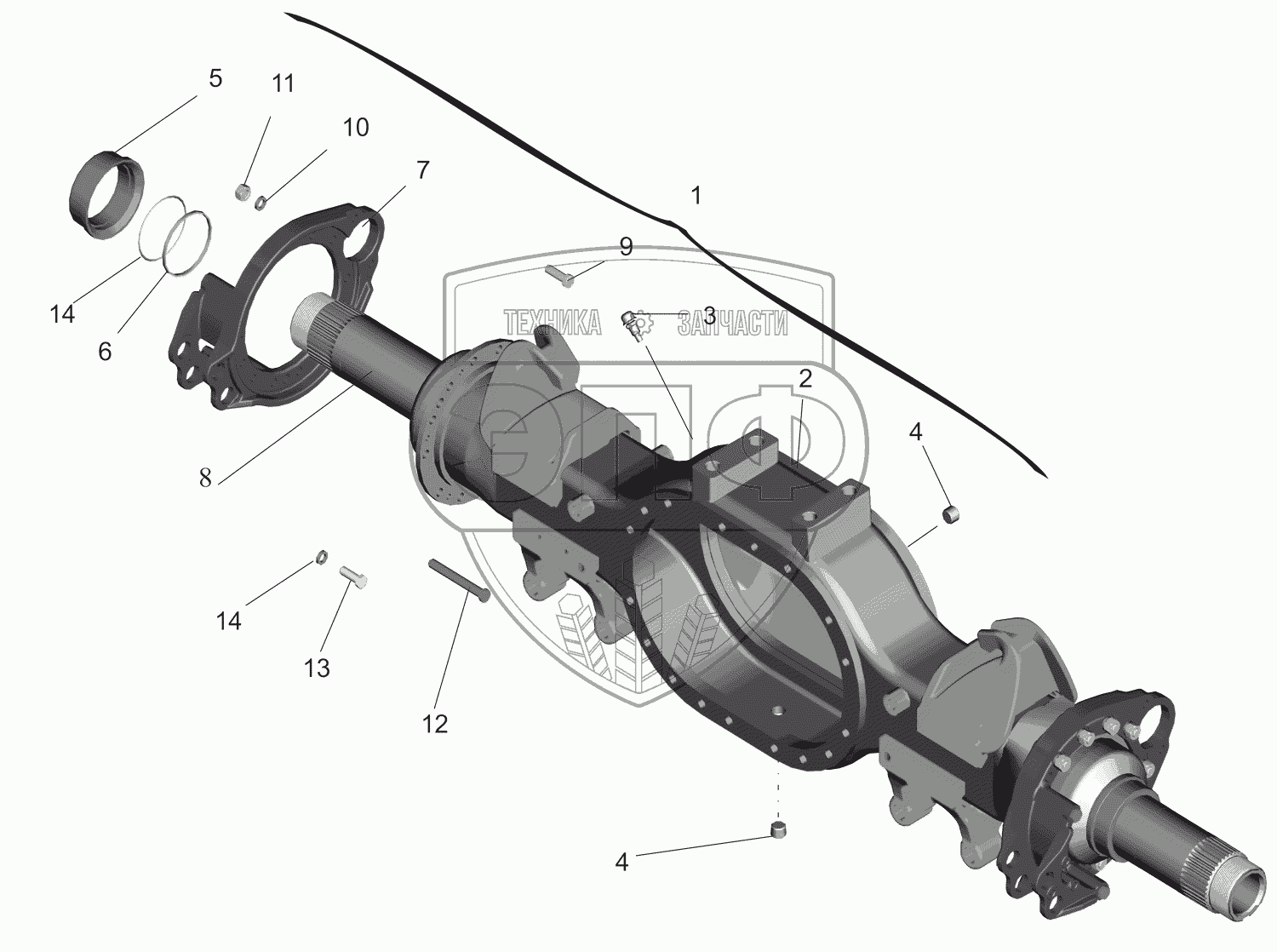 Каталог запасных частей к технике: МАЗ-630333. Мост задний. Картер моста