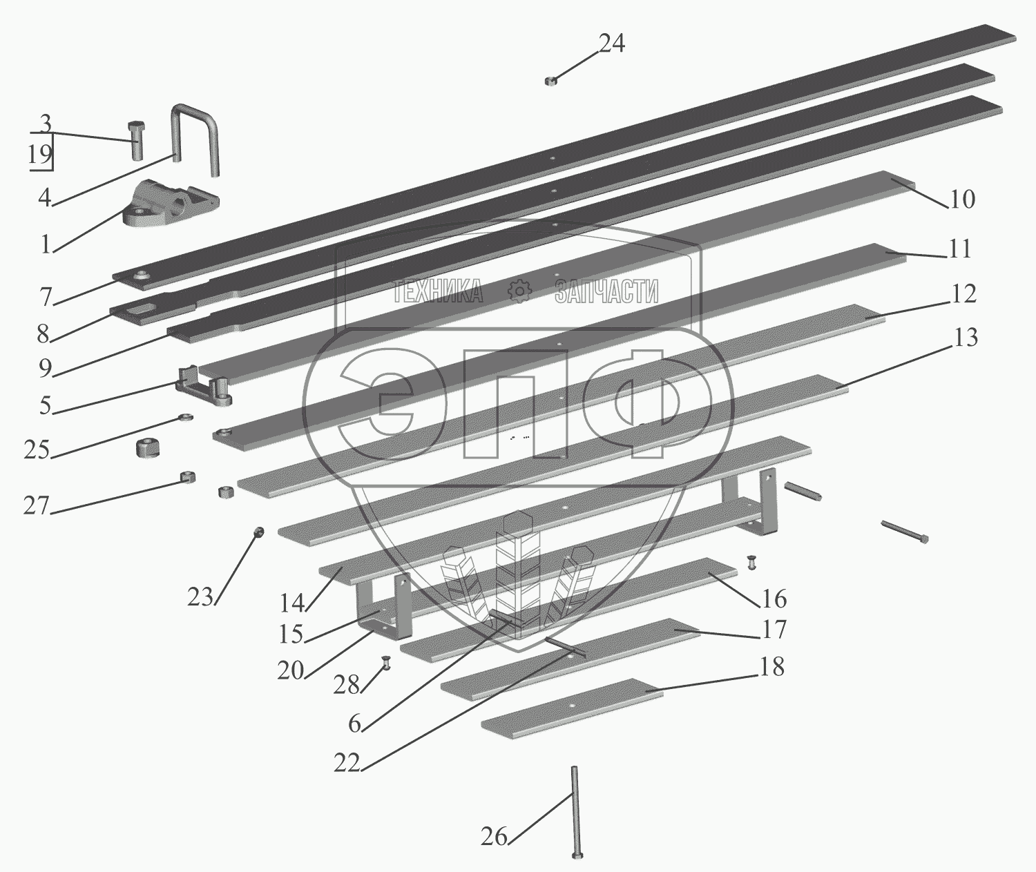 Каталог запасных частей к технике: МАЗ-630333. Рессора передняя 642208-2902012