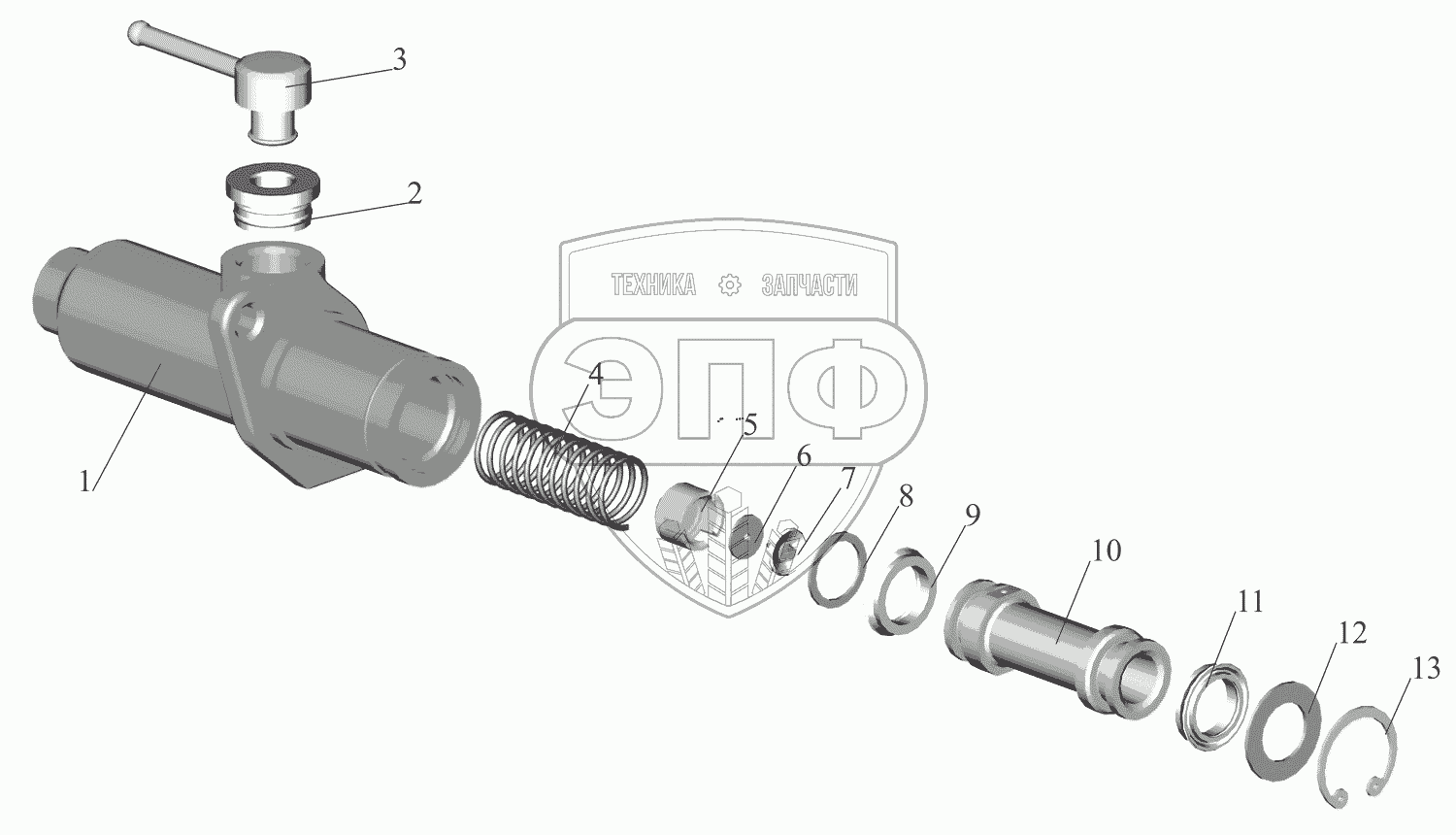 Каталог запасных частей к технике: МАЗ-630333. Цилиндр подпедальный 6430-1602510
