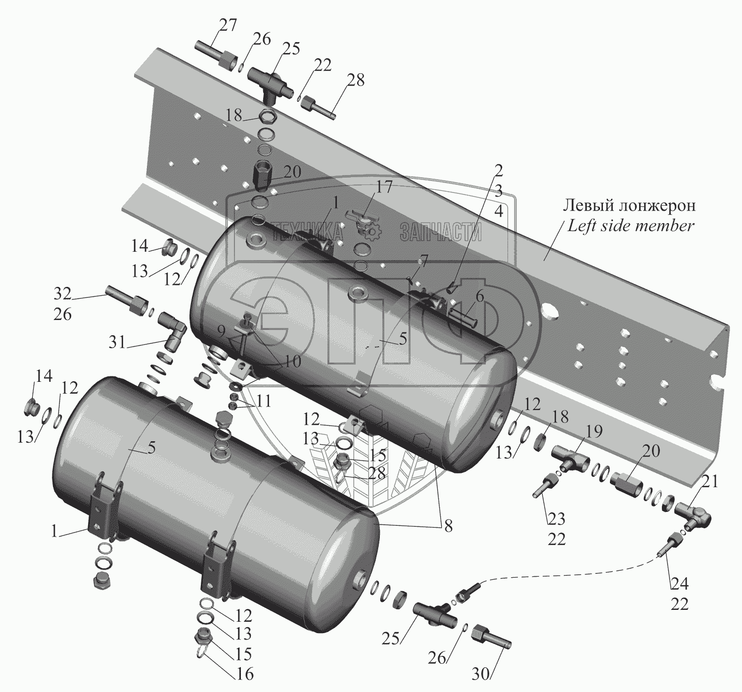 Каталог запасных частей к технике: МАЗ-630333. Установка ресиверов 63031-3513004