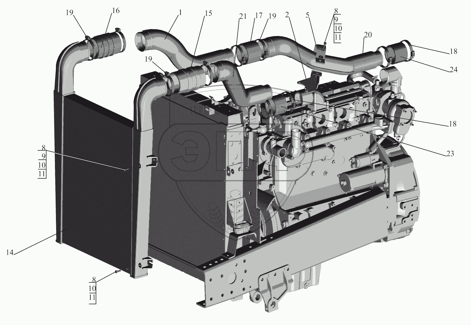 Каталог запасных частей к технике: МАЗ-630333. Установка системы охлаждения наддувочного воздуха