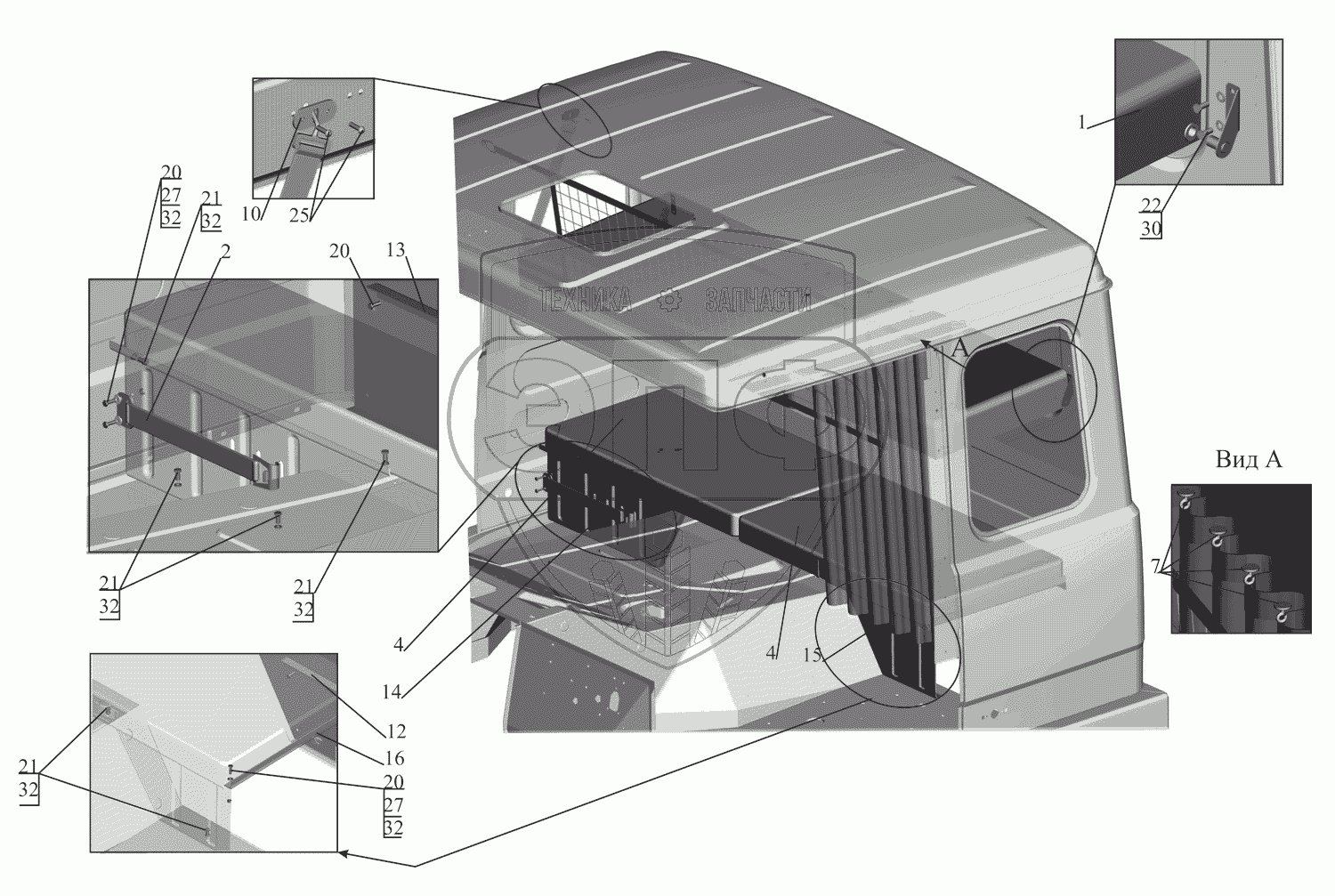 Каталог запасных частей к технике: МАЗ-630333. Установка спальных мест 64221-8200010