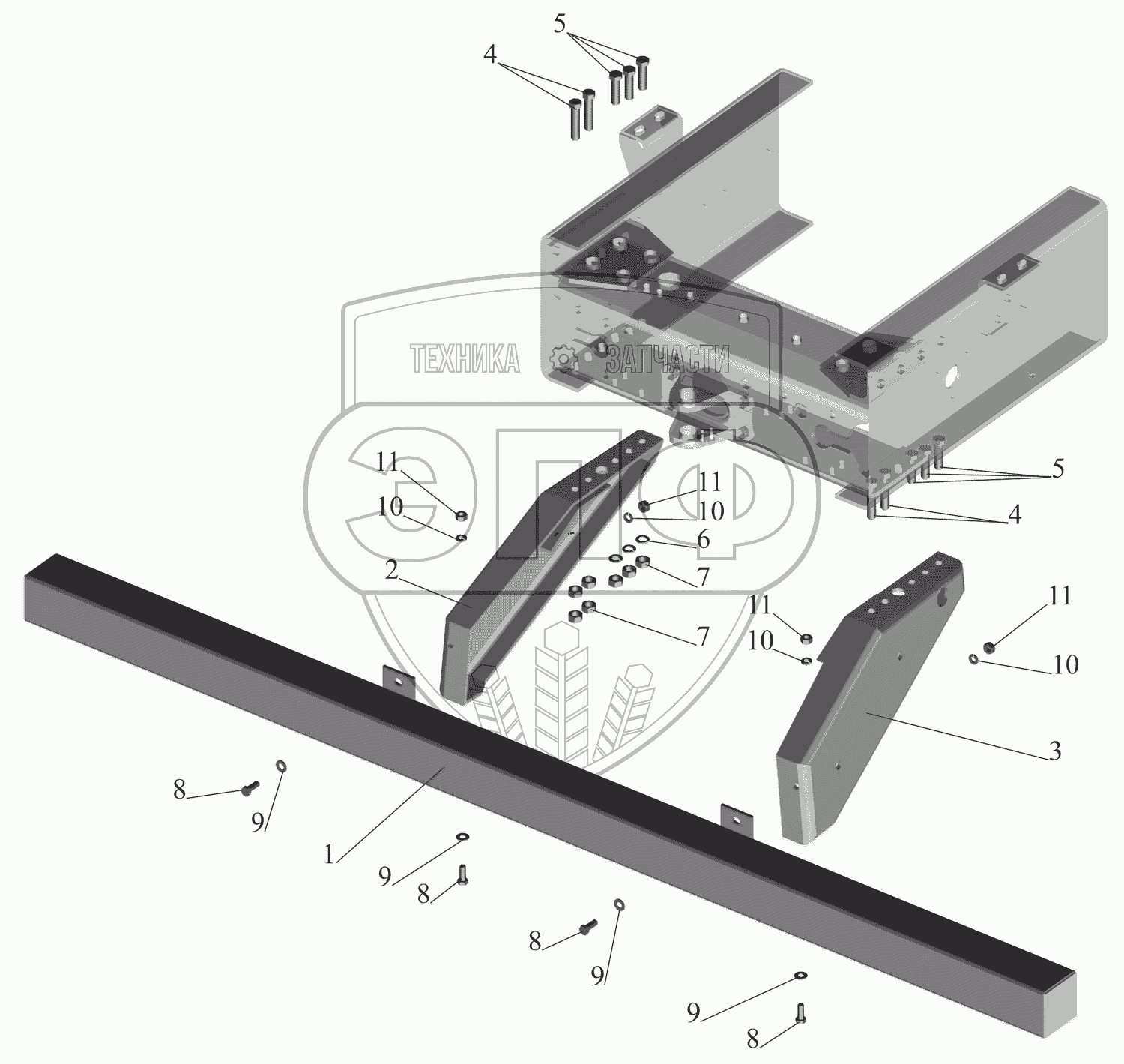Каталог запасных частей к технике: МАЗ-630333. Установка заднего бампера