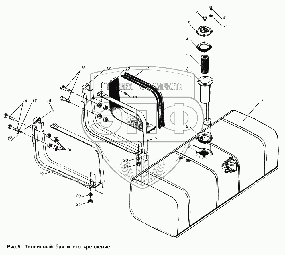 Каталог запасных частей к технике: МАЗ-6303. Топливный бак и его крепление
