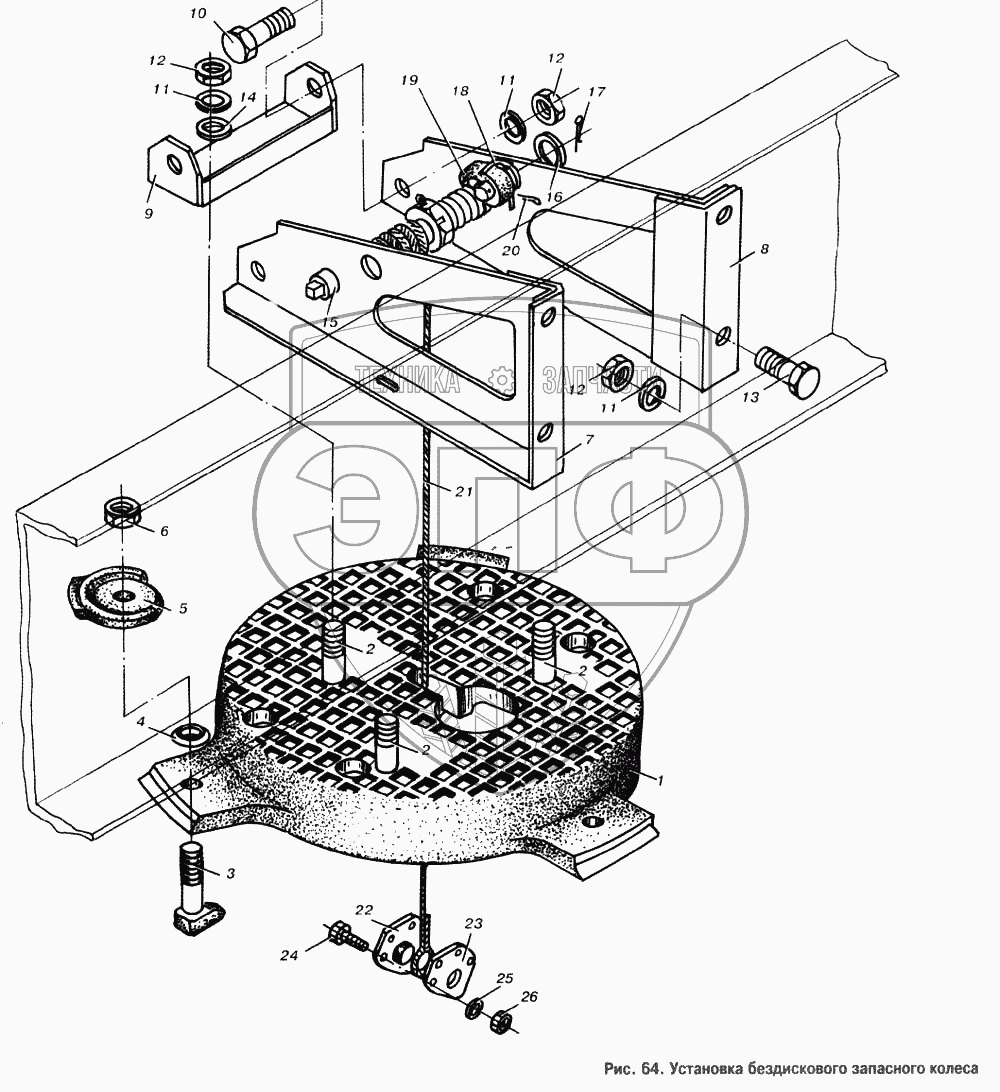 Каталог запасных частей к технике: МАЗ-6303. Установка бездискового запасного колеса