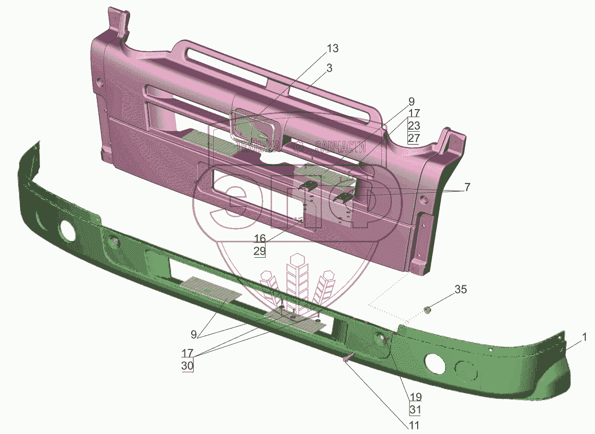 Каталог запасных частей к технике: МАЗ-631019. Бампер передний 643019-2803010