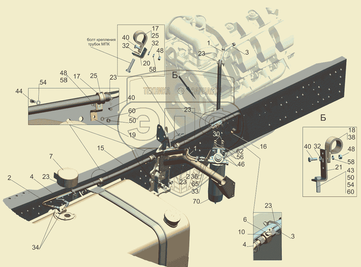 Каталог запасных частей к технике: МАЗ-631019. Крепление топливопроводов 544019-1104002-010
