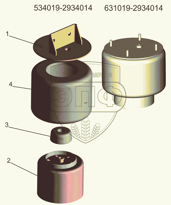 Каталог запасных частей к технике: МАЗ-631019. Пневмобаллон 534019-2934014, 631019-2934014