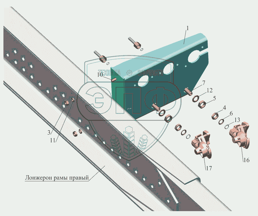 Каталог запасных частей к технике: МАЗ-631019. Пневмовывод к прицепу 534019-3521004