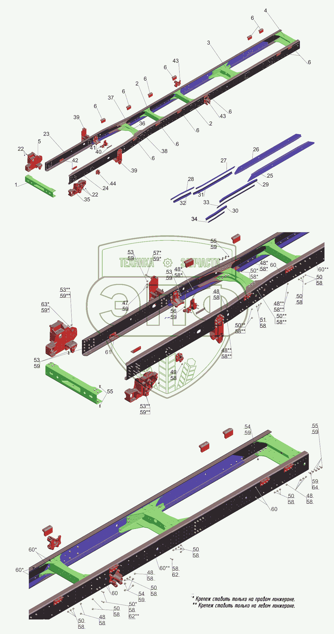 Каталог запасных частей к технике: МАЗ-631019. Рама 631019-2801002-030