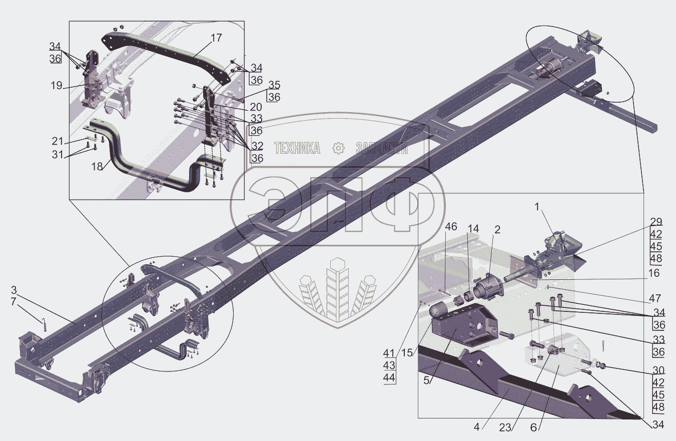 Каталог запасных частей к технике: МАЗ-631019. Рама 6310E9-2800010-031