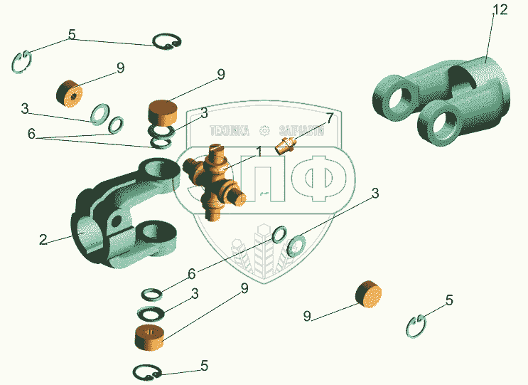Каталог запасных частей к технике: МАЗ-631019. Шарнир карданный 6430-3444052-001