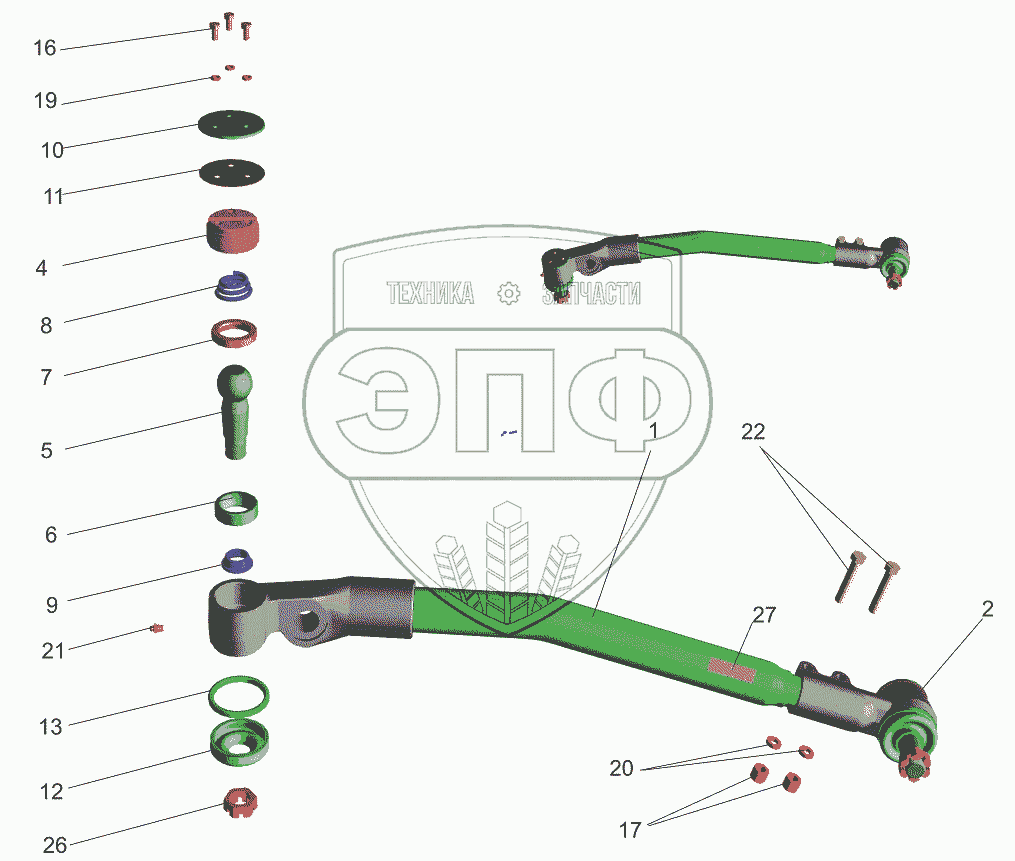 Каталог запасных частей к технике: МАЗ-631019. Тяга продольная 5440-3003010