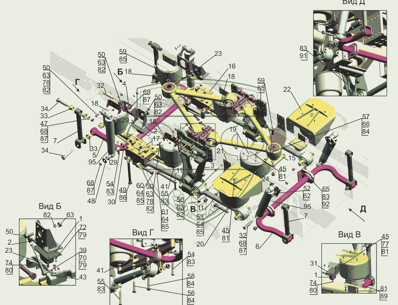 Каталог запасных частей к технике: МАЗ-631019. Установка подвески задней 631019-2900002