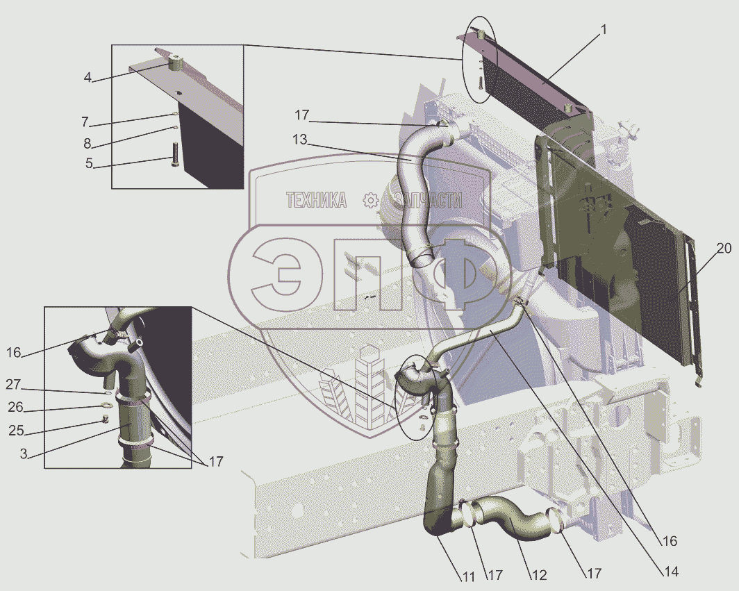 Каталог запасных частей к технике: МАЗ-631019. Установка системы охлаждения 544019-1300005
