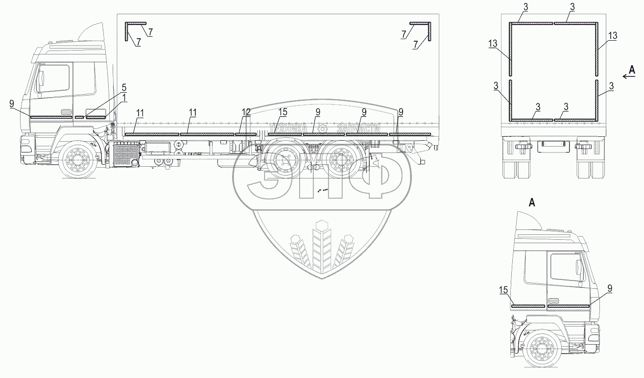 Каталог запасных частей к технике: МАЗ-631019. Установка светоотражающей маркировки 631019-8200002