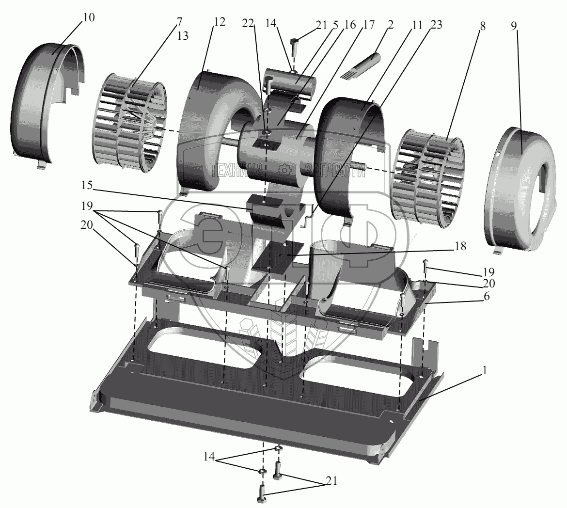 Каталог запасных частей к технике: МАЗ-631236. Блок вентилятора 6430-8118010
