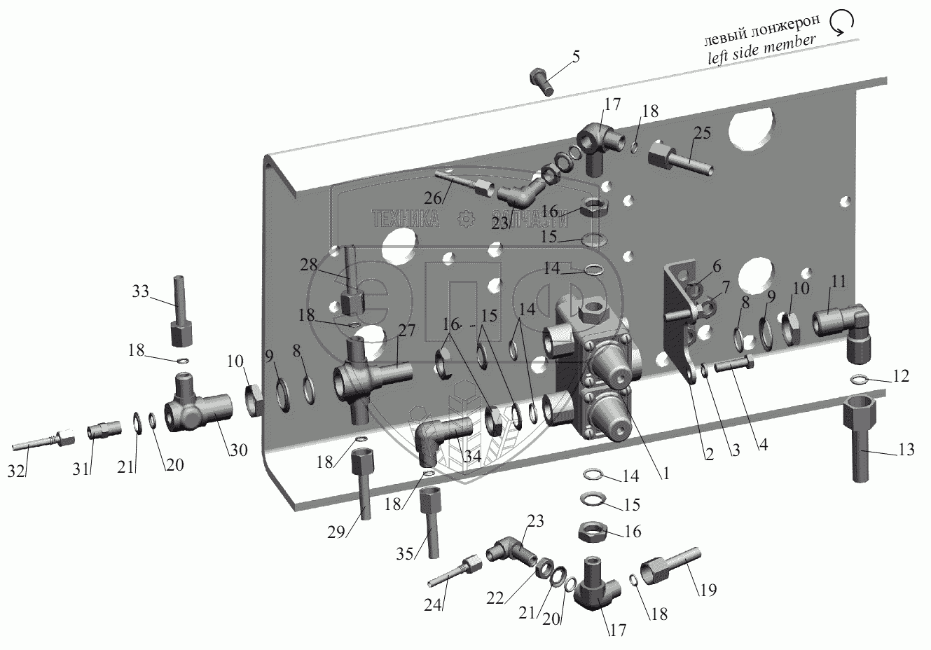 Каталог запасных частей к технике: МАЗ-631236. Крепление четырехконтурного клапана