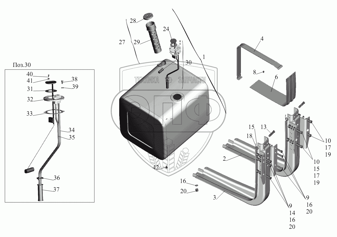 Каталог запасных частей к технике: МАЗ-631236. Крепление топливного бака 631236-1101002