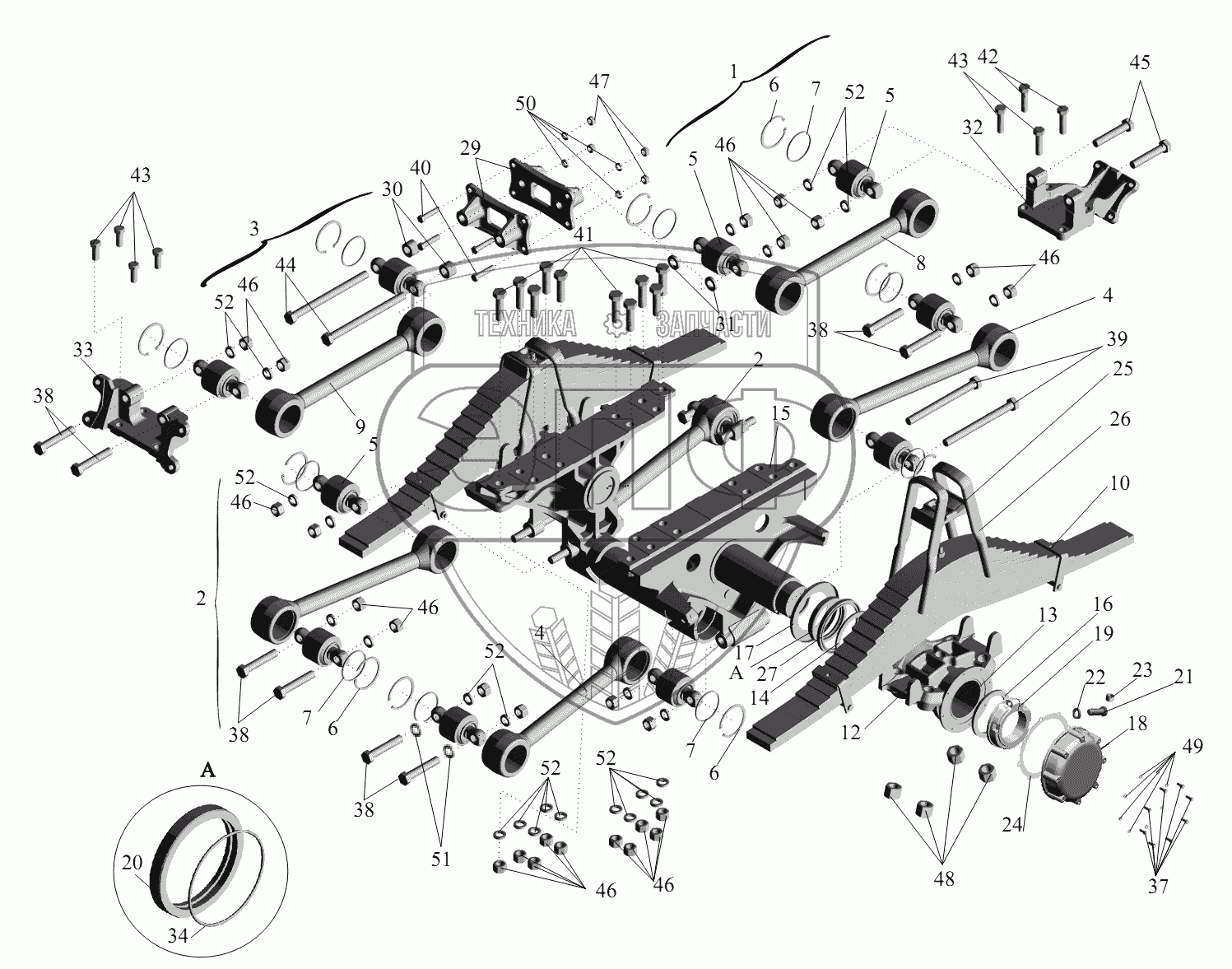 Каталог запасных частей к технике: МАЗ-631236. Подвеска балансирная