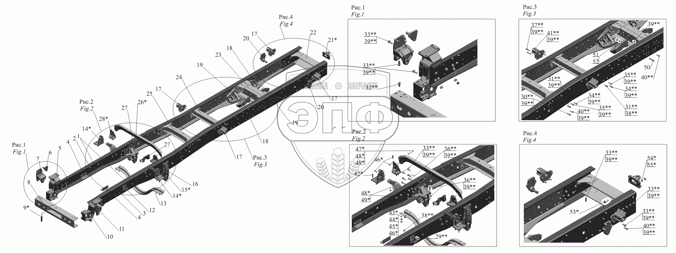 Каталог запасных частей к технике: МАЗ-631236. Рама 650136-2801002