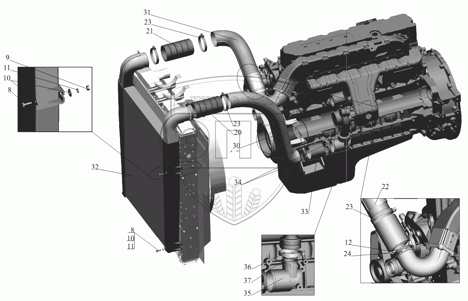 Каталог запасных частей к технике: МАЗ-631236. Система охлаждения наддувочного воздуха