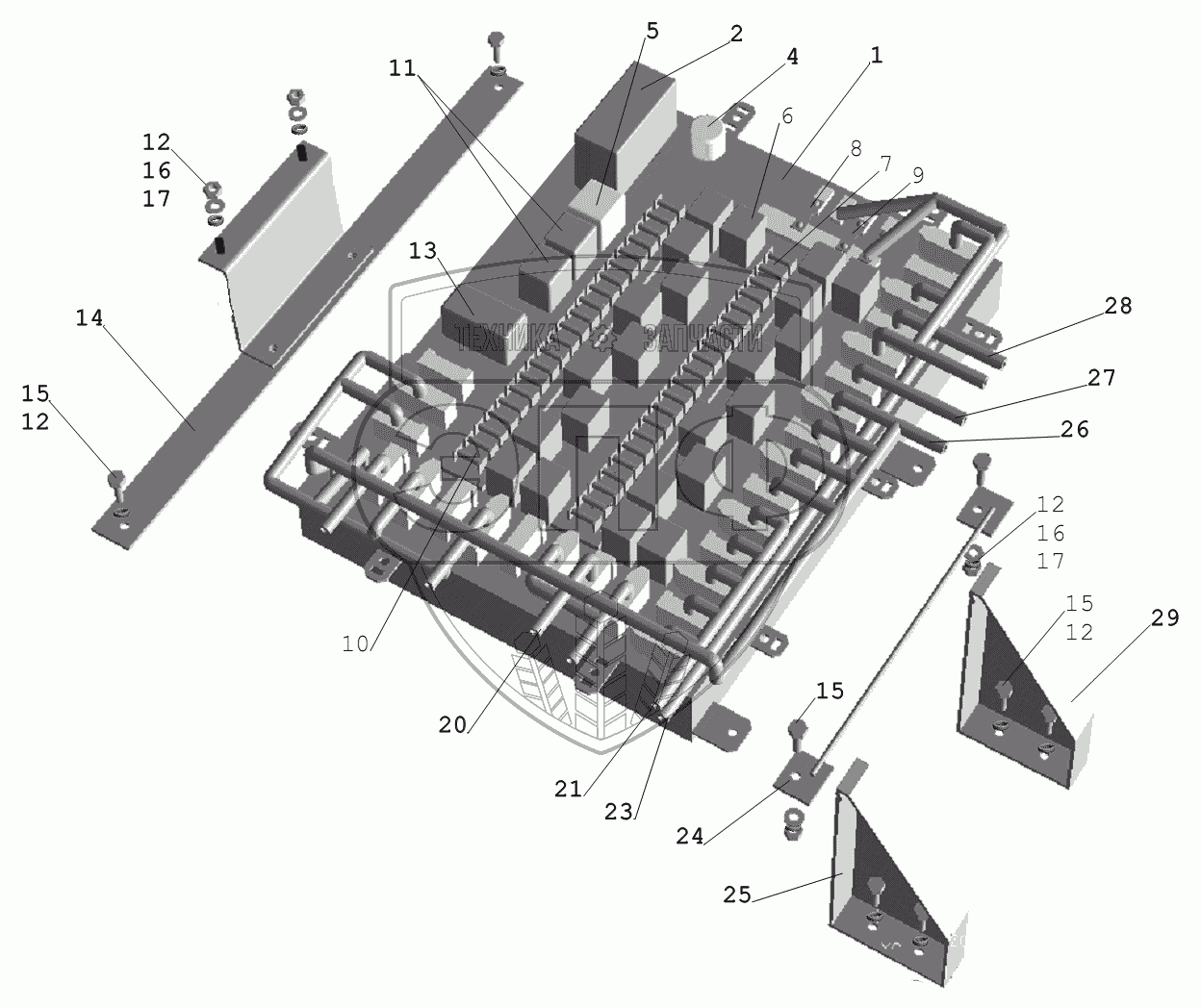 Каталог запасных частей к технике: МАЗ-631236. Установка блока коммутационной аппаратуры