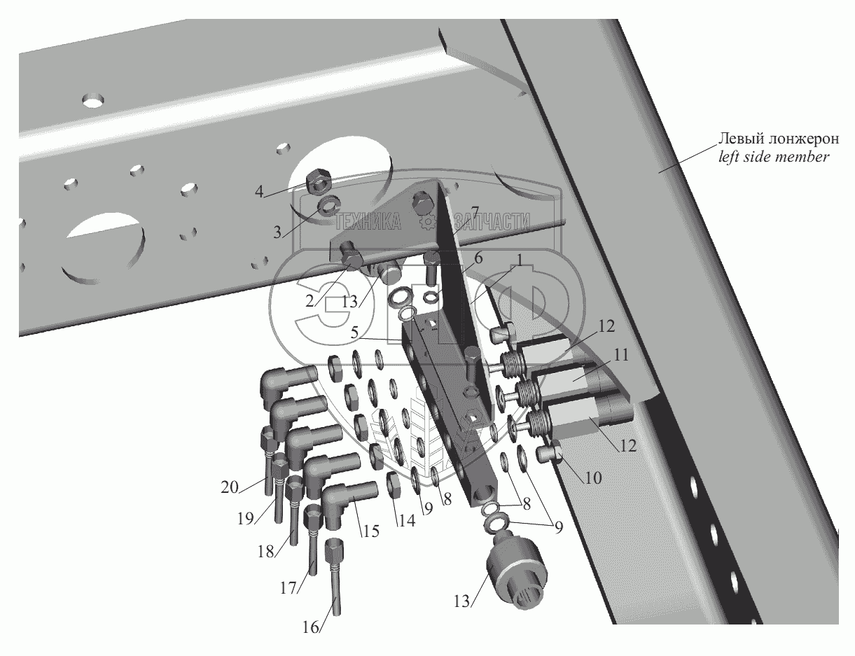 Каталог запасных частей к технике: МАЗ-631236. Установка датчиков