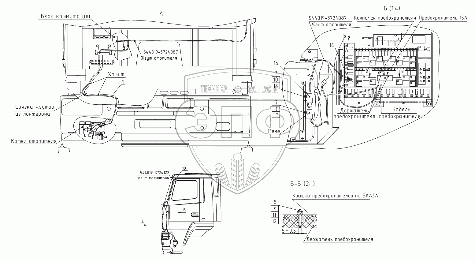 Каталог запасных частей к технике: МАЗ-631236. Установка электрооборудования подогревателя
