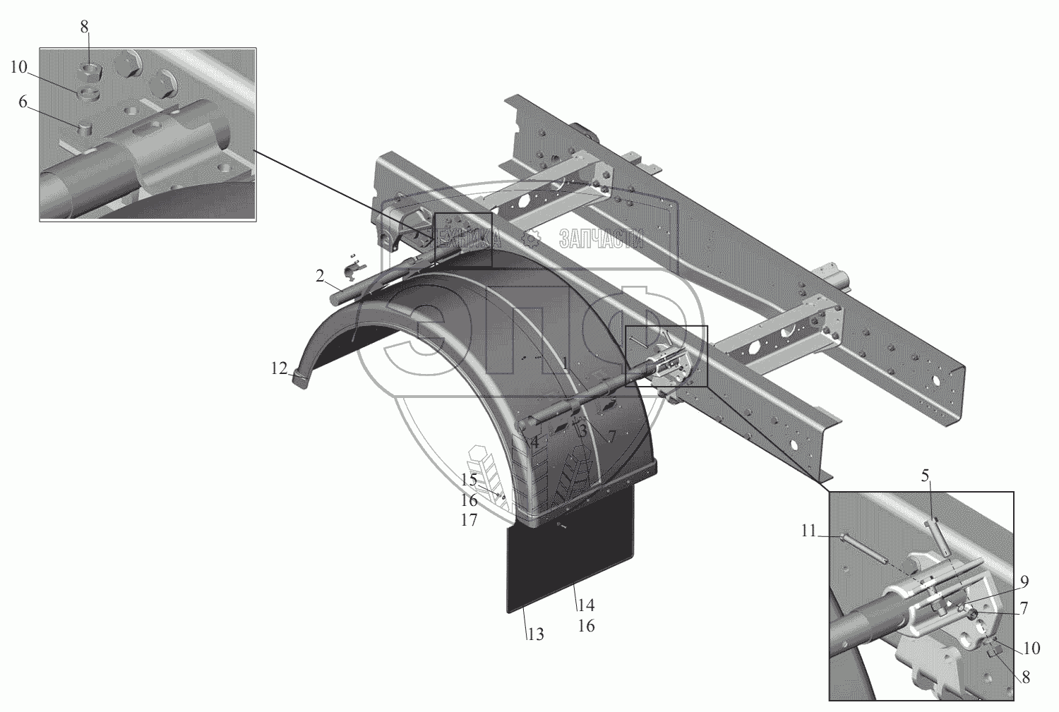 Каталог запасных частей к технике: МАЗ-631236. Установка крыльев 534008-8500048