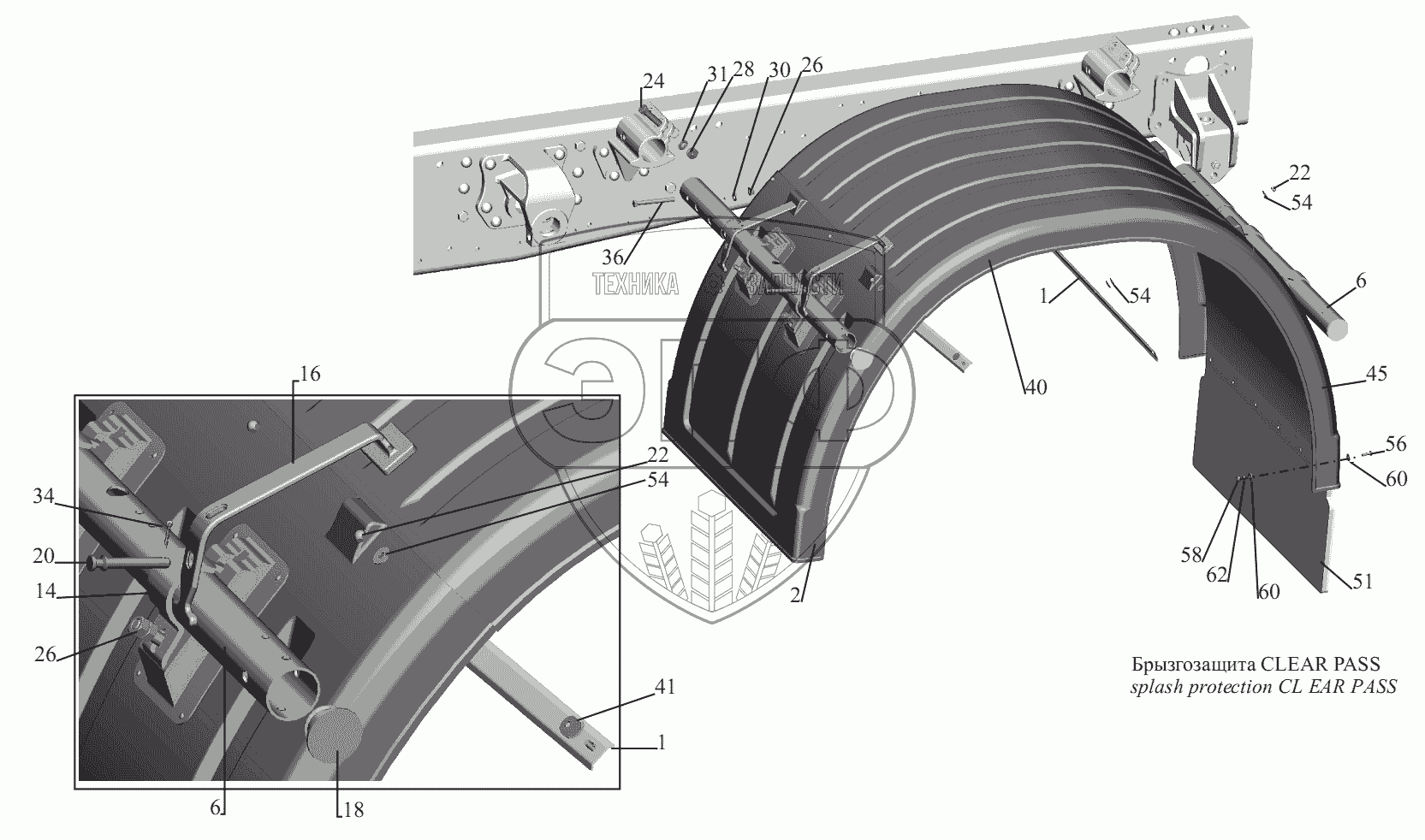Каталог запасных частей к технике: МАЗ-631236. Установка крыльев 555102-8500048-050