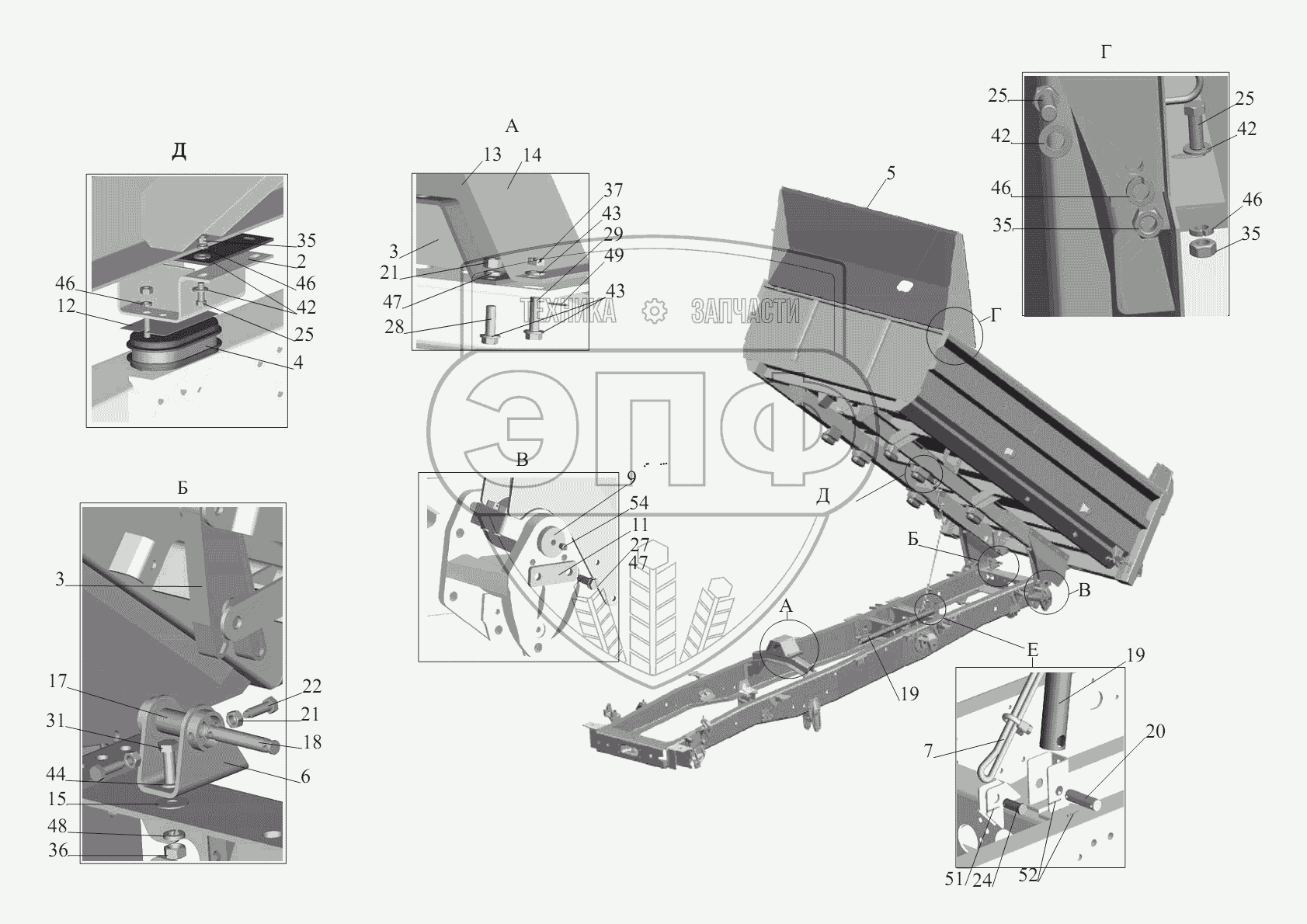 Каталог запасных частей к технике: МАЗ-631236. Установка платформы 5550-8500002