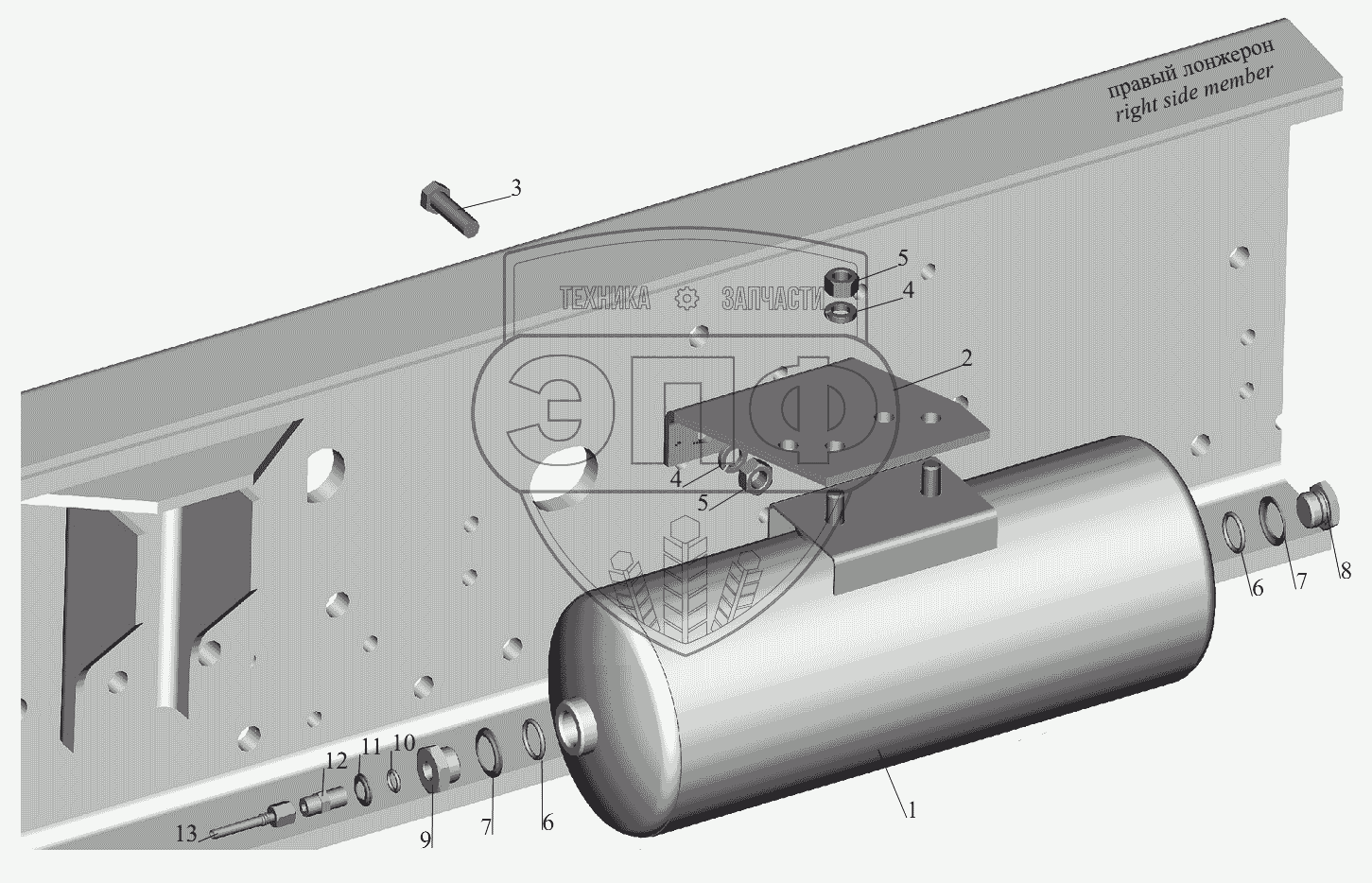 Каталог запасных частей к технике: МАЗ-631236. Установка ресивера и присоединительной арматуры