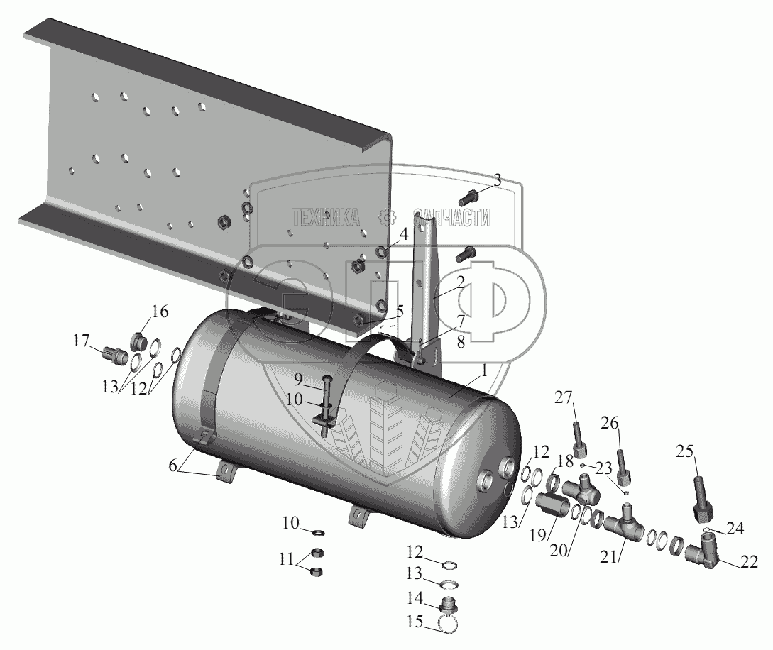 Каталог запасных частей к технике: МАЗ-631236. Установка ресивера и присоединительной арматуры