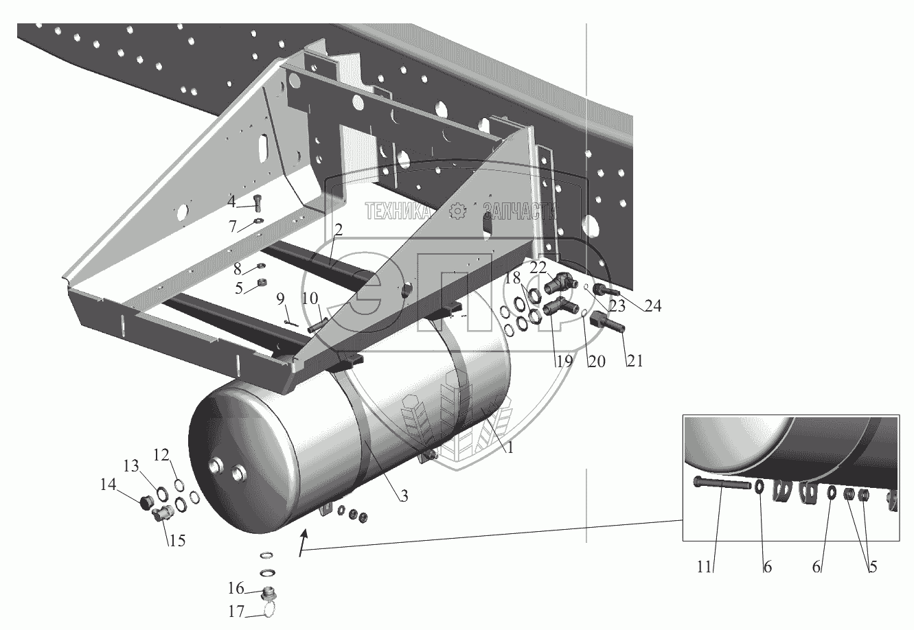 Каталог запасных частей к технике: МАЗ-631236. Установка ресиверов и присоединительной арматуры