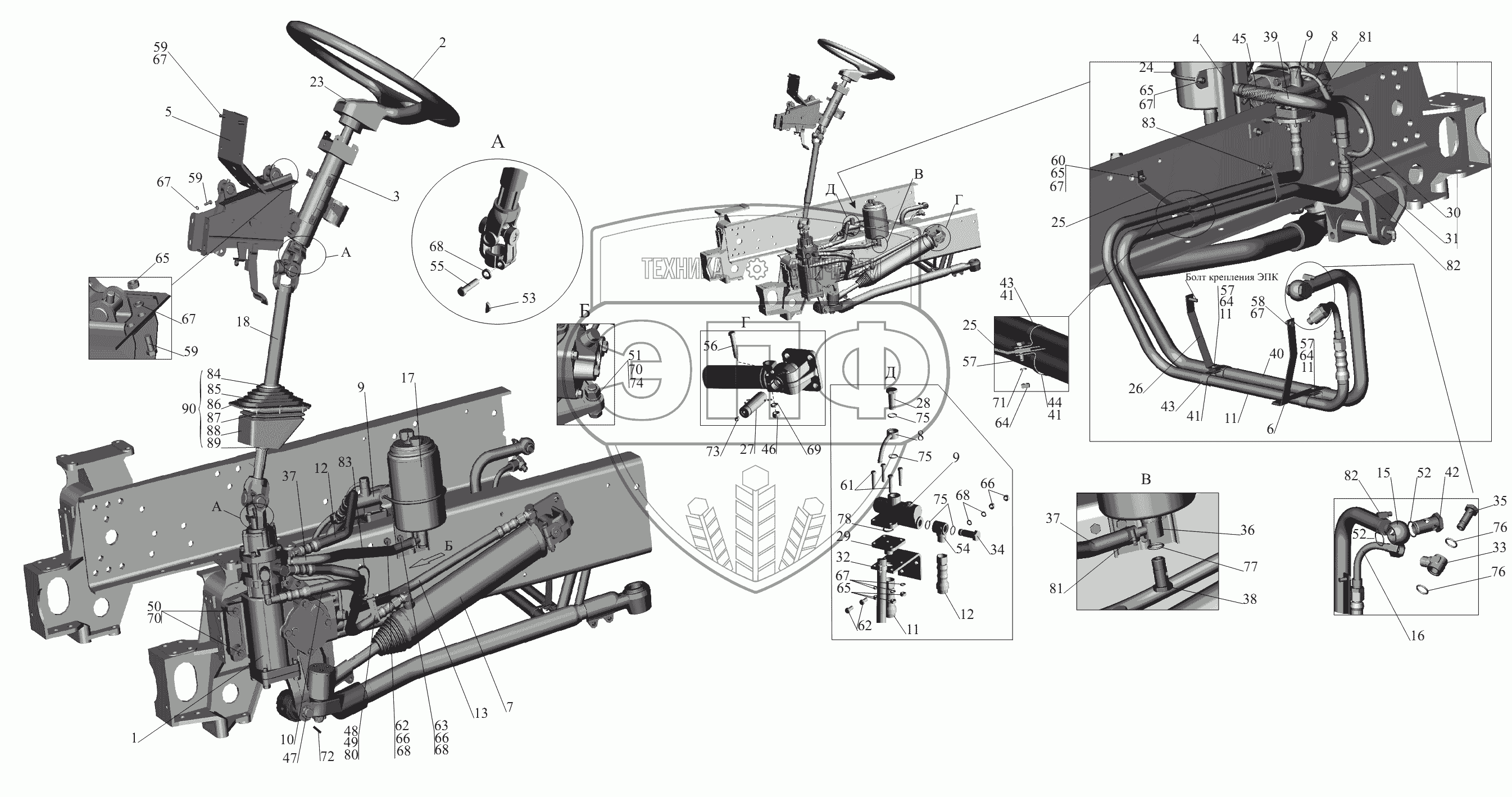 Каталог запасных частей к технике: МАЗ-631236. Установка рулевого управления 650136-3400001