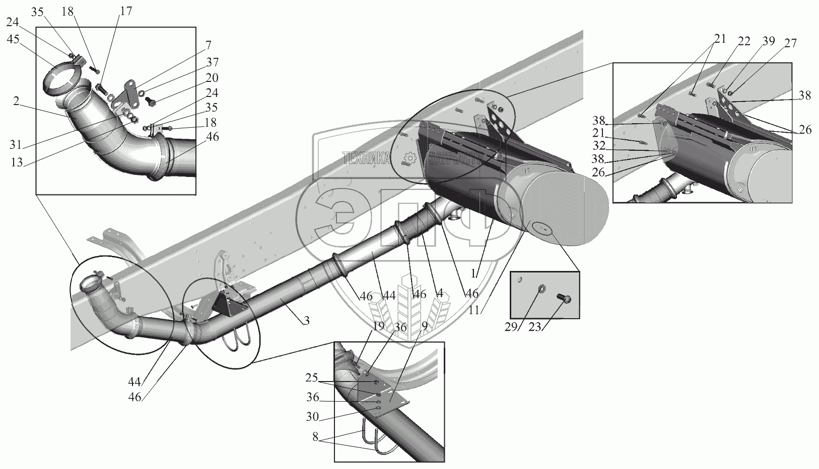 Каталог запасных частей к технике: МАЗ-631236. Установка системы выпуска 650136-1200001