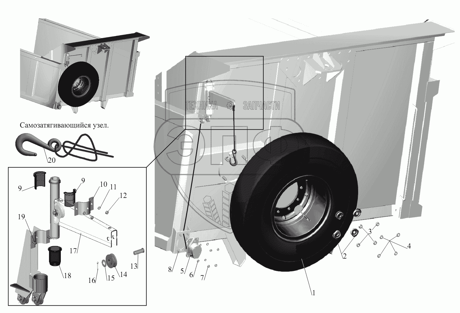 Каталог запасных частей к технике: МАЗ-631236. Установка запасного колеса 650136-3100001