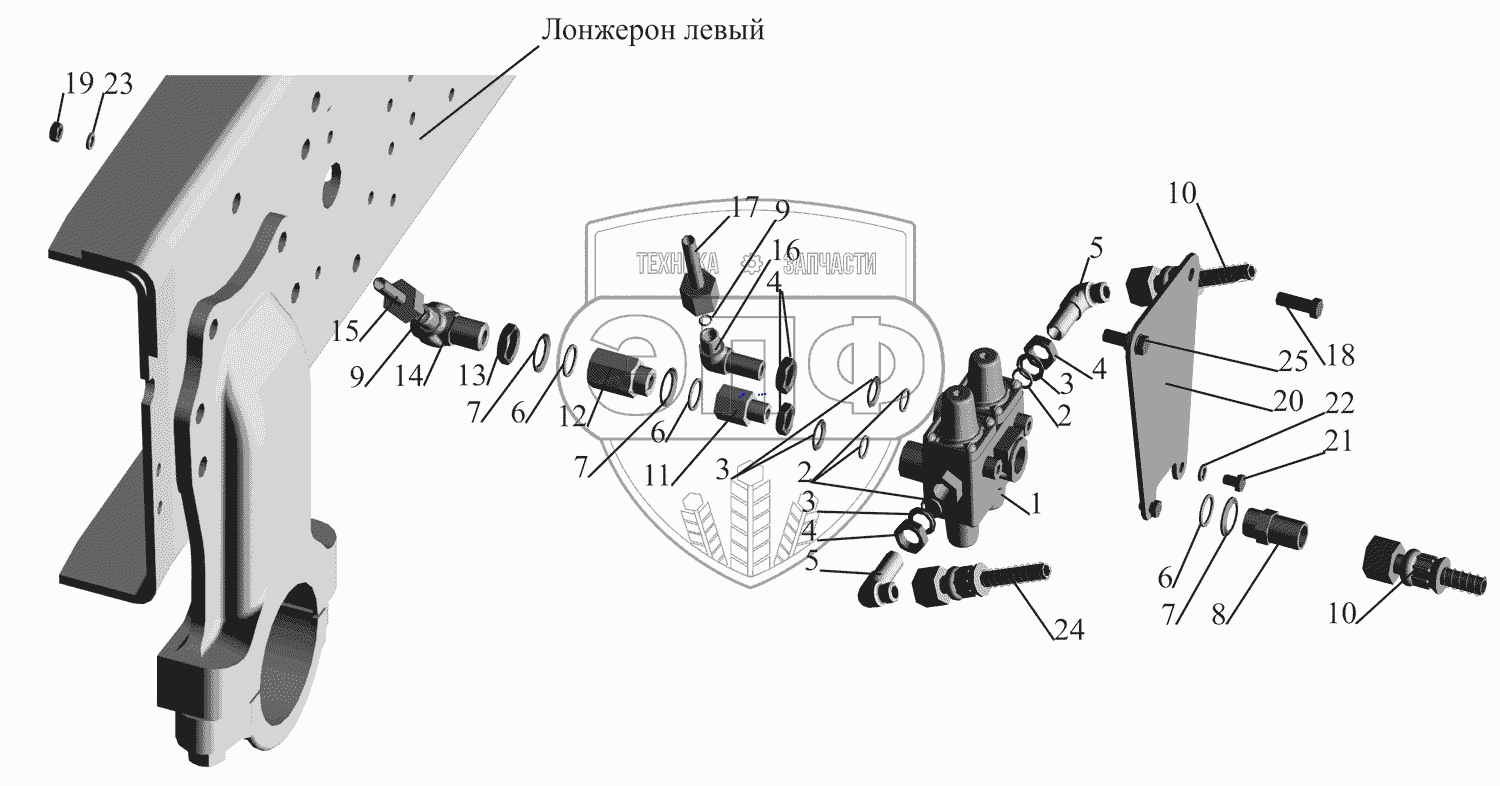 Каталог запасных частей к технике: МАЗ-631705. Крепление клапана четырехконтурного 6317-3515004