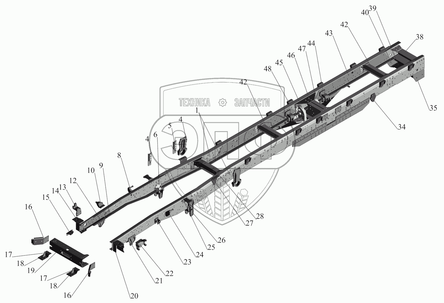 Каталог запасных частей к технике: МАЗ-631705. Рама 631708-2801002-012
