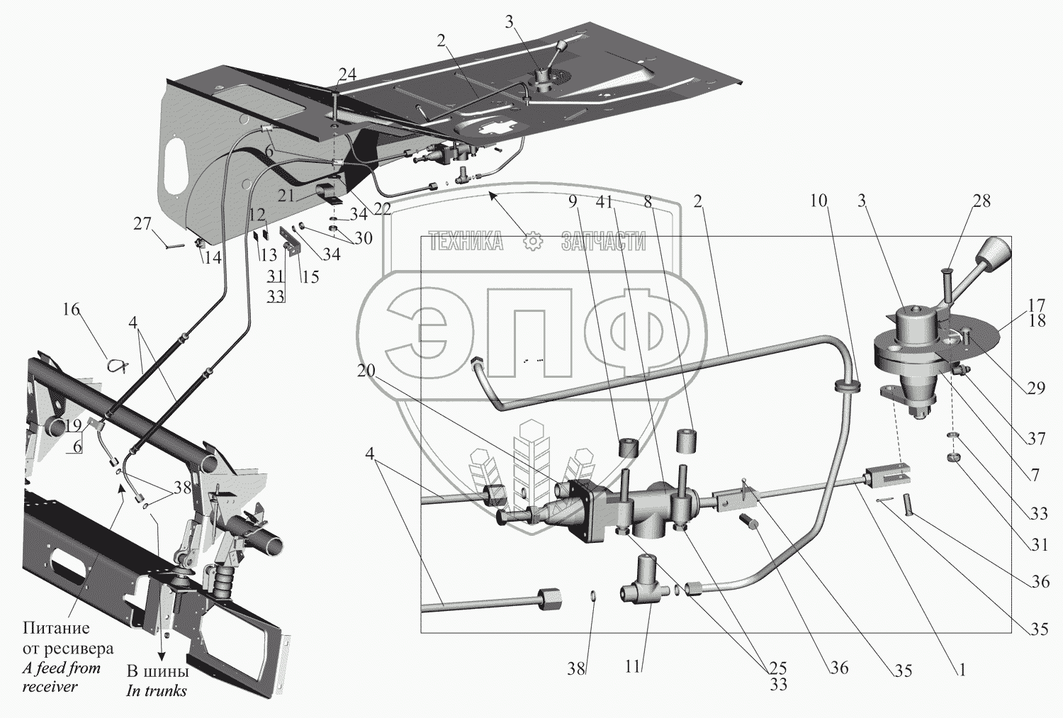Каталог запасных частей к технике: МАЗ-631705. Установка крана накачки шин