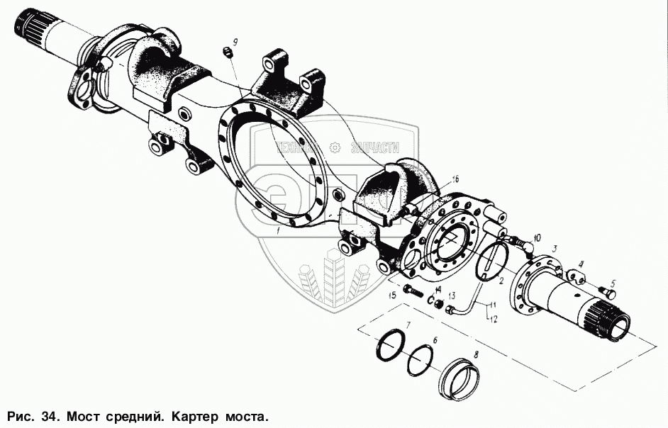 Каталог запасных частей к технике: МАЗ-6317. Мост средний. Картер моста