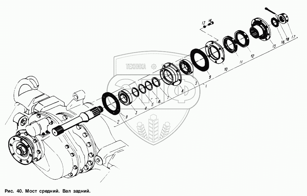 Каталог запасных частей к технике: МАЗ-6317. Мост средний. Вал задний