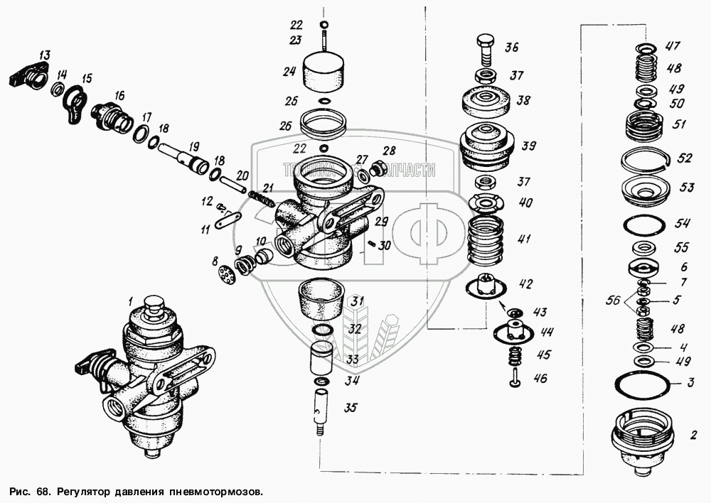 Каталог запасных частей к технике: МАЗ-6317. Регулятор давления пневмотормозов