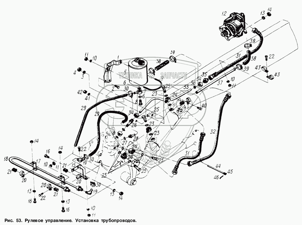 Каталог запасных частей к технике: МАЗ-6317. Рулевое управление. Установка трубопроводов